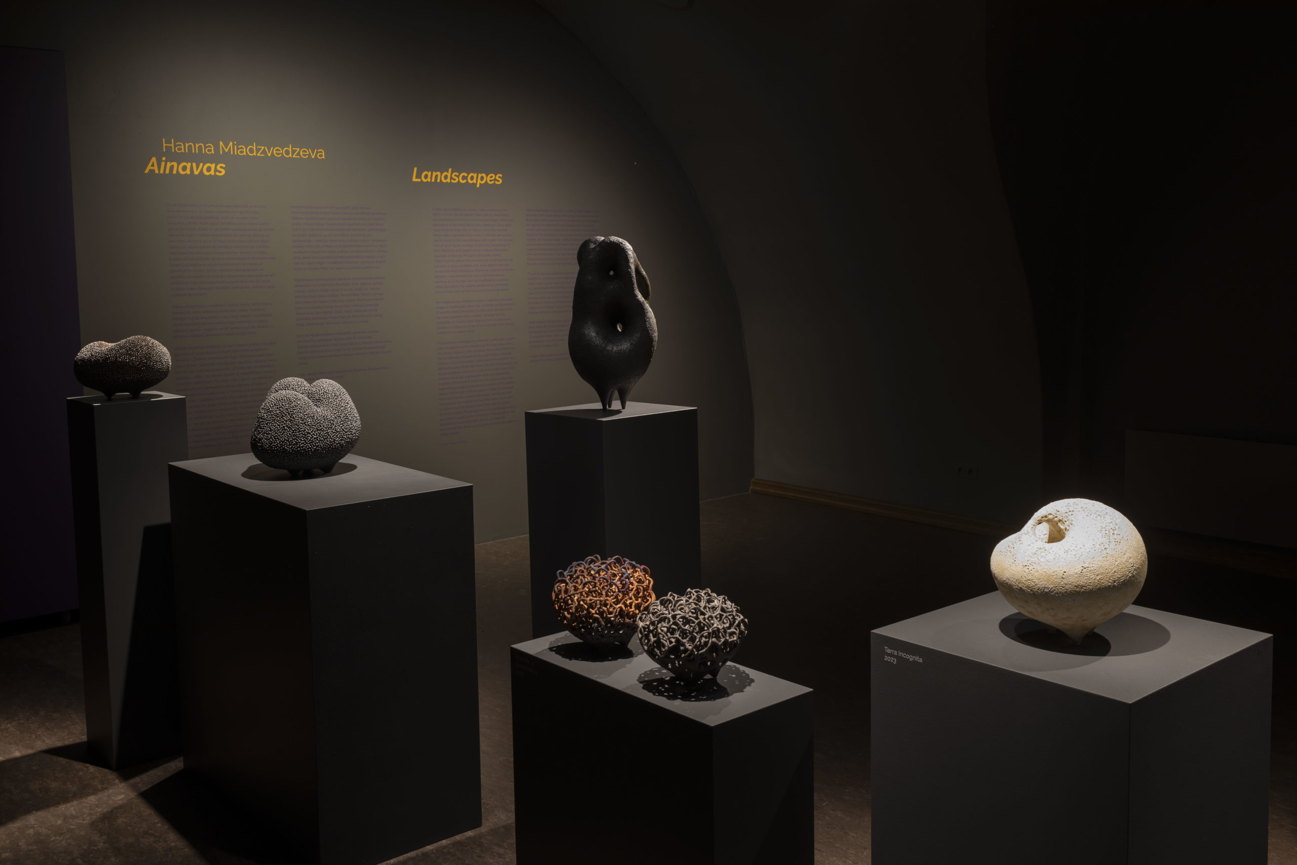 Izstādē skatāmā skulptūru grupa ir tapusi pēdējo trīs gadu garumā kā turpinājums manam ilgtermiņa projektam “Ainavas”. Zināmu iemeslu pēc šajā salīdzinoši īsajā laikā mana dzīve ir kardināli mainījusies. Apstākļu spiesta, esmu kļuvusi par mūsdienu nomadu, uzturējusies un strādājusi dažādās vietās. No vienas puses, šī nepastāvība saistās ar zināmām neērtībām. No otras – tā ir ļāvusi apmeklēt un iepazīt patiesi interesantas vietas. Ātrums, ar kādu ir mainījusies mana apkārtne, ir rosinājis pārdomas par telpām, kurās man ir gadījies nonākt. Visi izstādē skatāmie objekti ir radīti pēdējo trīs gadu laikā vairākās stipendiju programmās, mākslas rezidencēs un simpozijos. Tos iedvesmojusi ainava, daba un arhitektūra tur, kur man ir bijusi laime strādāt. “Ainavu” sērijas skulptūras ir iecerētas kā man nozīmīgu vietu tvērumi, kas atgādina par piedzīvoto. Ne ilustratīvi, kā to dara fotogrāfijas, bet kā dārgas piemiņlietas, kas atsauc atmiņā telpas pieredzes atraisītās pārdomas un manas pašuztveres nianses, tur atrodoties.