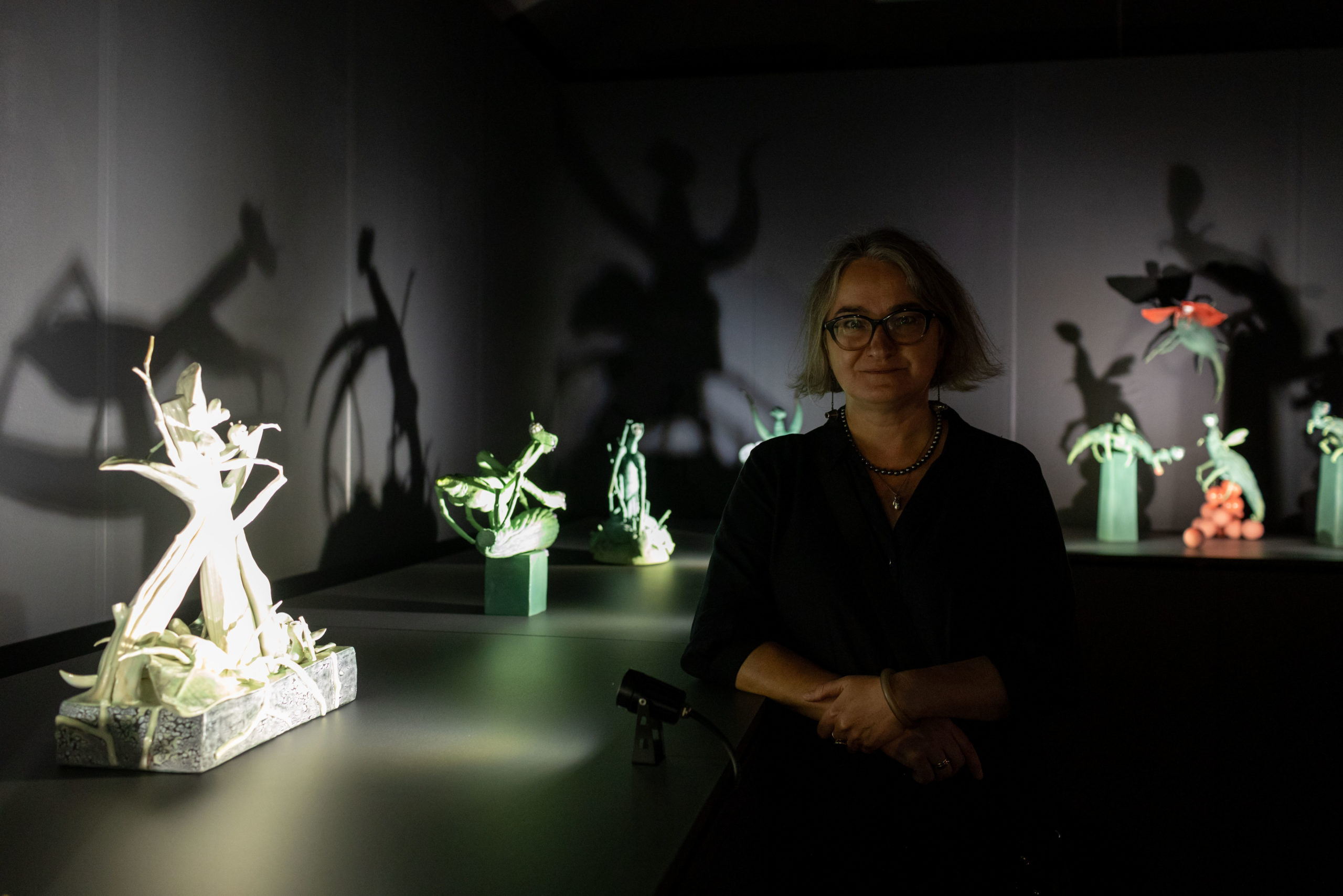 Dažkārt mākslinieces jaunākajā izstādē “Baiļu vārdošana” skatāmās skulptūras sāk atgādināt ne vien pasaku vai zinātniskās fantastikas tekstu varoņus, bet arī rituālus priekšmetus vai arheoloģiskus totēmus. Autores keramikas skulptūras ir eksponētas suģestējošā instalācijā, integrējot skaņu, gaismu un citus scenogrāfiskus līdzekļus un mudinot skatītāju ienākt savas zemapziņas mītiskajā mežā, lai stātos pretī savām bailēm un tās savaldītu. Kā atzīst pati māksliniece, drosme izaug no lielām bailēm. “Es nebaidos, es itin nemaz nebaidos,” nebeidz atkārtot bērns ar katru soli, ko sper arvien dziļāk vistumšākajā pagrabā.