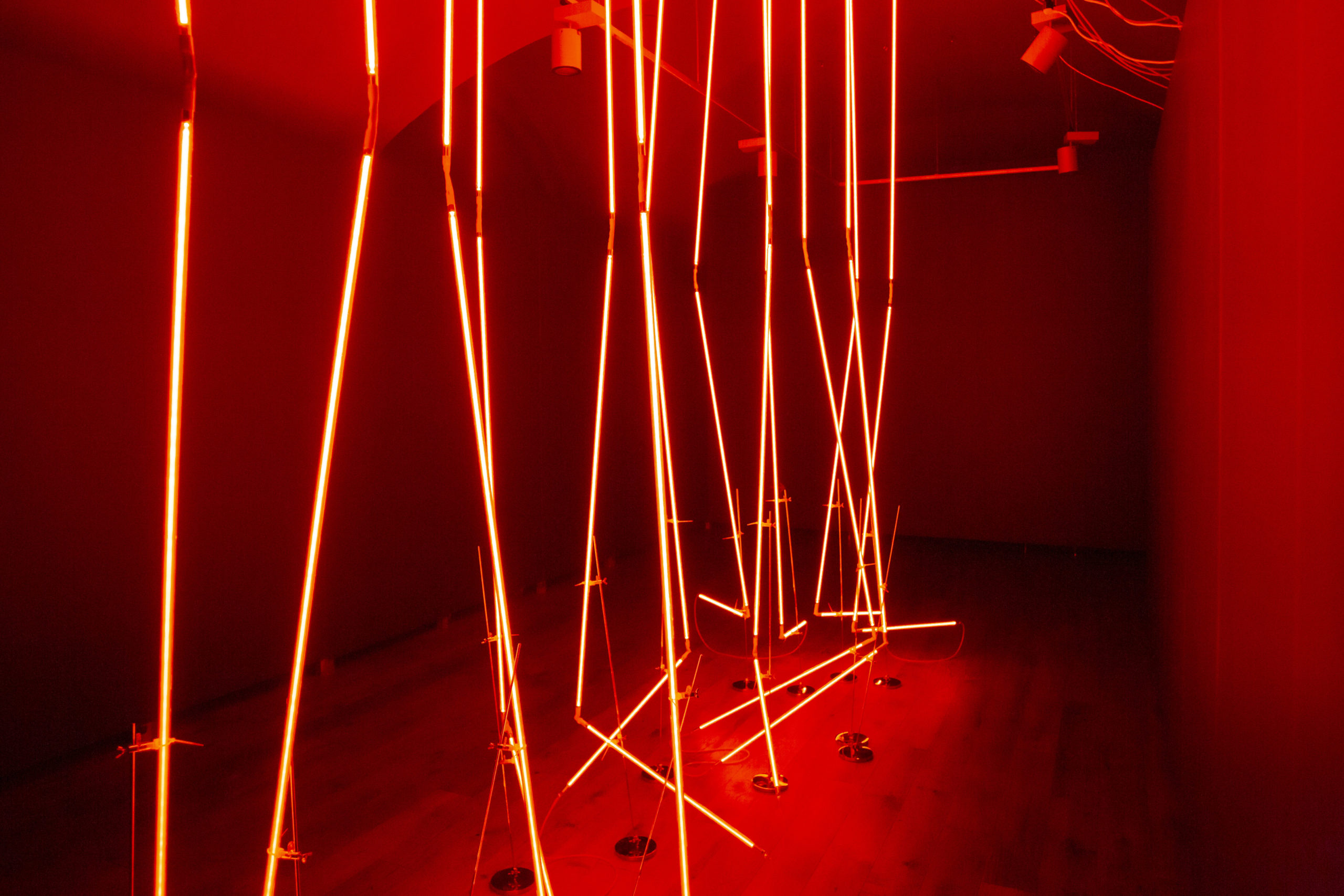 “Neona instalācija ir autora komentārs par gaismas matēriju un tās iespējām telpisku formu izbūvē. Kā atzīst pats mākslinieks, izstādes koncepts runā par telpas fizisko uztveri caur cilvēka maņām un gaismas fenomena materiālajām īpašībām, kuras piedzīvojam ne tikai ar redzi, bet gan kā vispārķermenisku pieredzi.