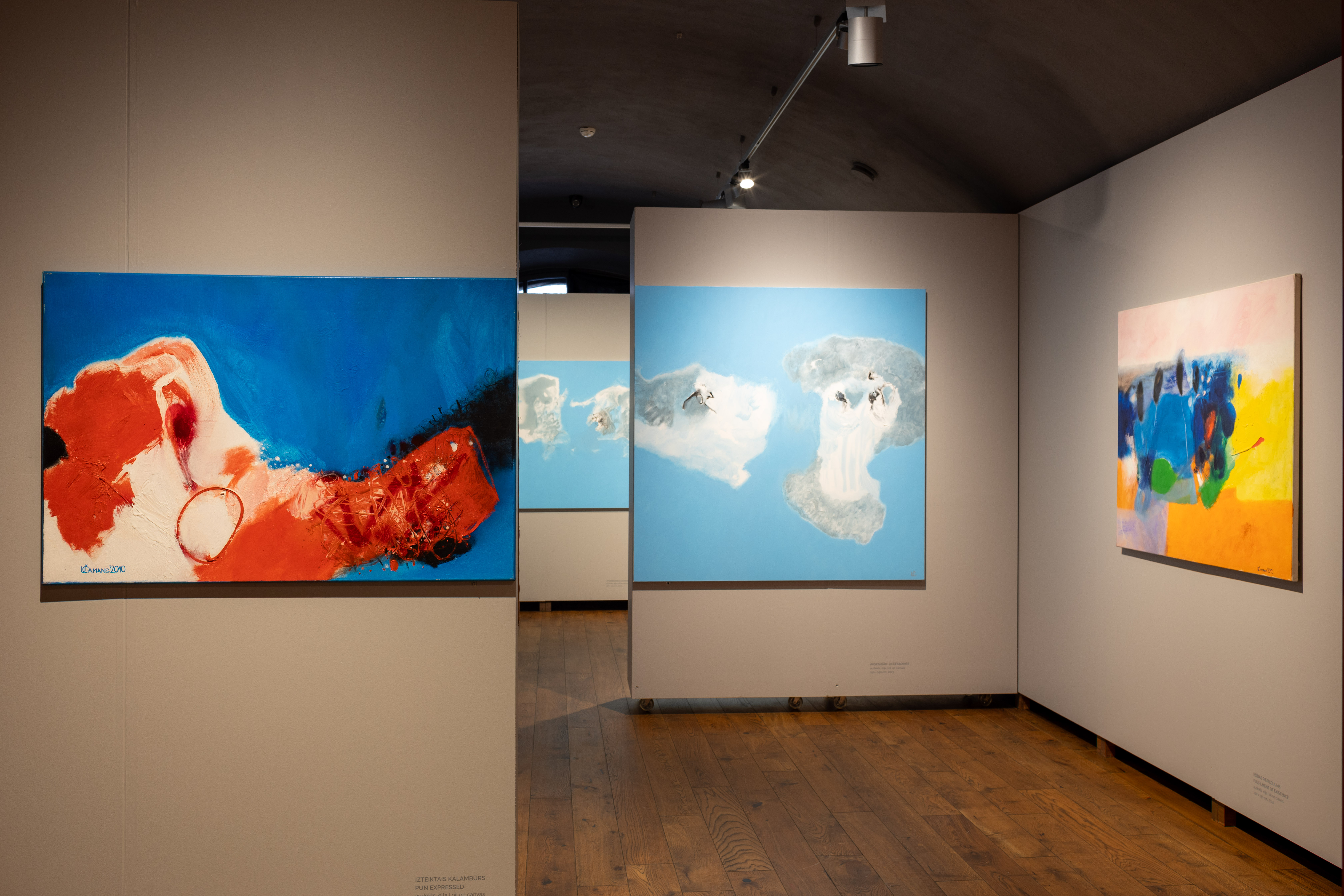 The exhibition title is The Grounded Moment. It dates way back to 1997 when Čamans was preparing for his solo show at Mans’s – a private gallery he owns and runs in Jēkabpils. Although considerable time has passed in his creative journey, which has been rich in fresh pursuits and finds, the phrase continues to be relevant and fitting for his new one-man exhibition at the Rothko Centre. To quote from painter Guna Millersone, Art Department Head at the Talsi Museum: “In the early 1990s, Uldis Čamans was the first artist in Latgale to start painting abstractions in the best sense of the term: with freedom and expressive drive, sharp-sightedness, intuitive intelligence in composition, a bold, compelling hand and a skilfully wielded brush producing patterns that seem almost graphical. He truly is a painter without fear. And then, of course, his sense of colour is so clear – for me, his work has always been a most delightful sight.”