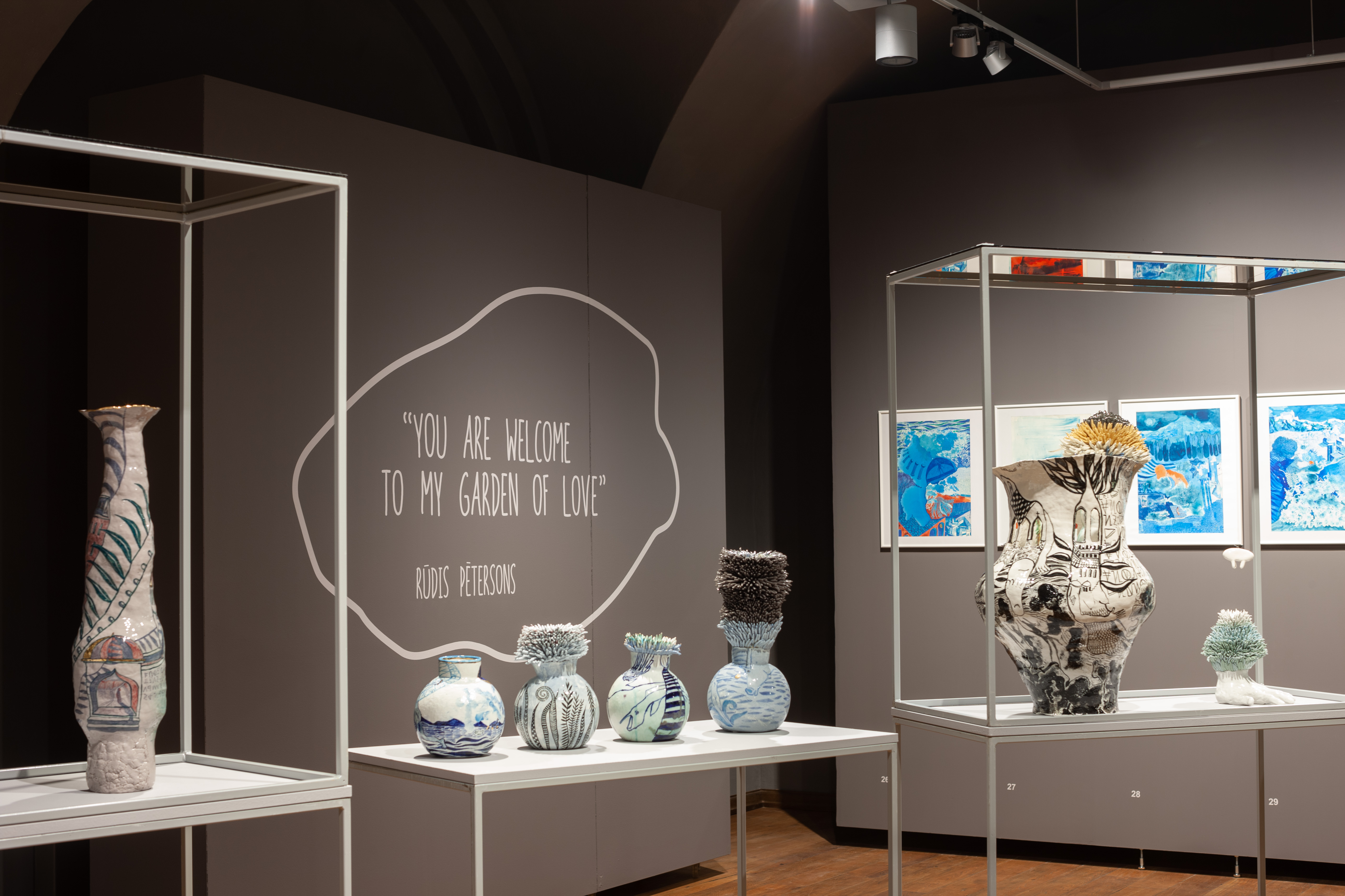 This is the third solo show by Rūdis Pētersons, aka Del Ruden, with a title carefully chosen to bring together all the exhibits, in this case – paintings and ceramics. When the author was getting ready with the concept and the works, his thoughts revolved around nature and its almighty power on the one hand and porcelain on the other – this delicate, sophisticated and often highly demanding material. The first works were made three years ago, before the concept was fully developed. It clicked as the artist was working and listening to some background music – the moment he heard the lyrics “You’re welcome, you’re welcome. To my garden, my garden of love”, he felt they were a perfect fit for his vases. As the creative process was nearing the end, the war broke out in Ukraine. It had a strong impact on the artist’s creativity and gave a new poignancy to the concept – the flowers growing from porcelain vases as a silent call for a seemingly utopian Garden of Eden where everyone is welcome to sow their seeds of love. How real this would be if only we all had the capacity to love! The exhibits also embody the artist’s emotional experiences and personal growth, and each visitor can look at them through their individual prism, plant the seeds of this visual impulse into their heart and nurture them into bloom. “Tend your own inner garden” – essentially, that’s what the exhibition statement is all about.
