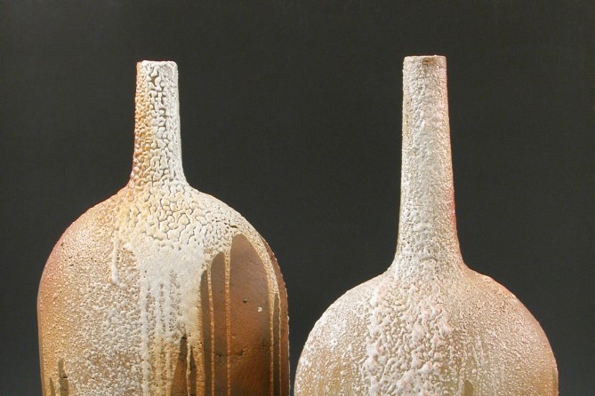 Violeta Jātniece. “Bottles”. Chamotte, glaze. Varied sizes (detail). 1990. Collection of the Latvian National Museum of Art.