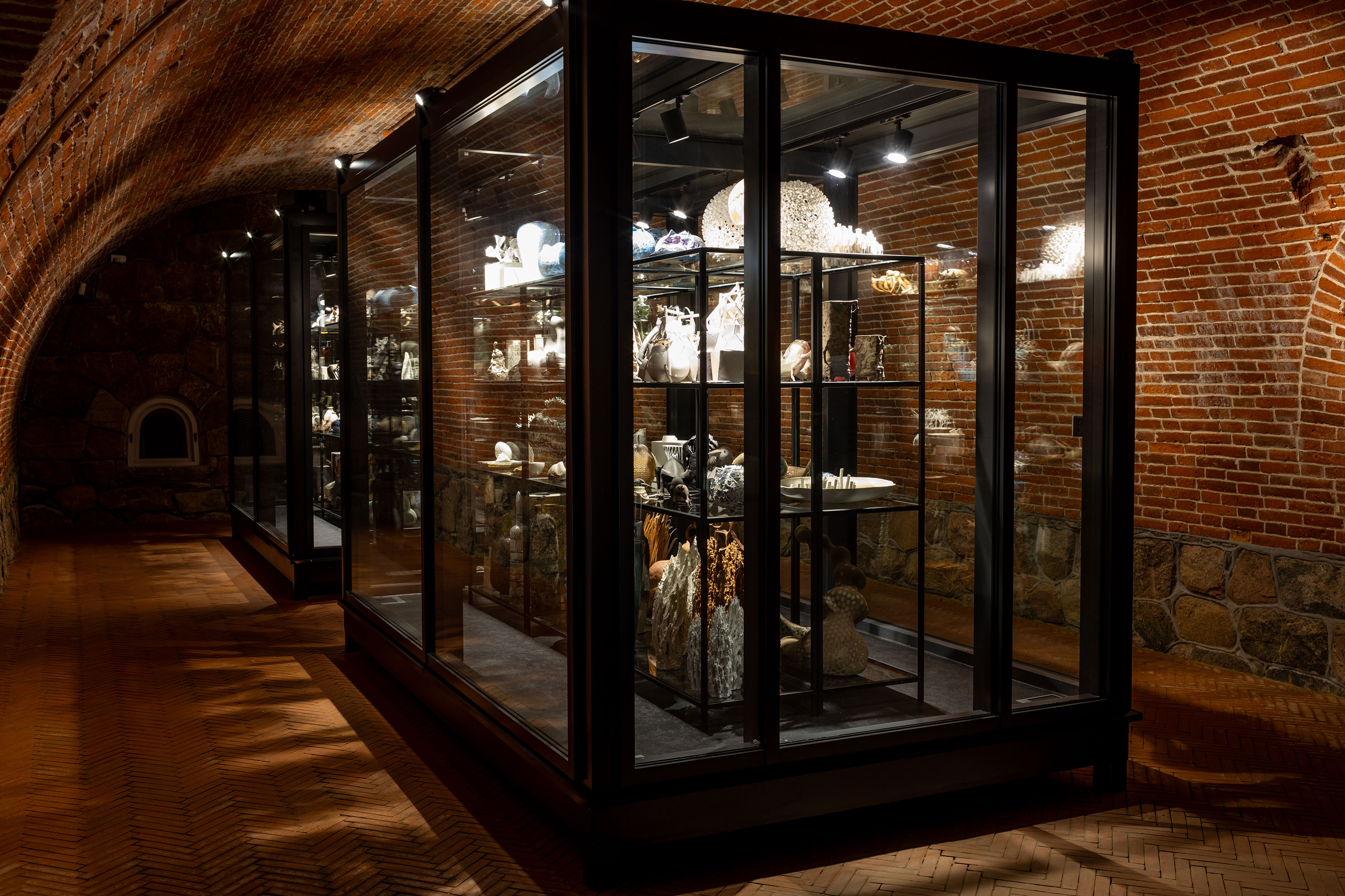 The new open-storage chamber displays over a hundred artworks by artists from 40 countries. The open-access solution enables the public to explore the diversity of ceramic art and appreciate the artists’ creativity and professionalism in dealing with different earthen materials (from clay and chamotte to stoneware and porcelain) and multiple firing techniques.